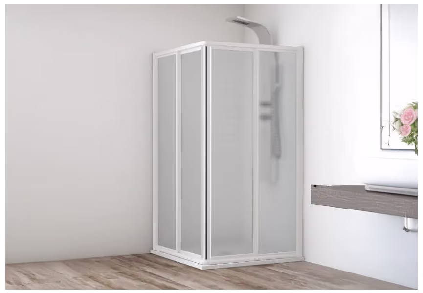 Ahorra espacio, permite un acceso cómodo a la ducha y ayuda a contener salpicaduras.